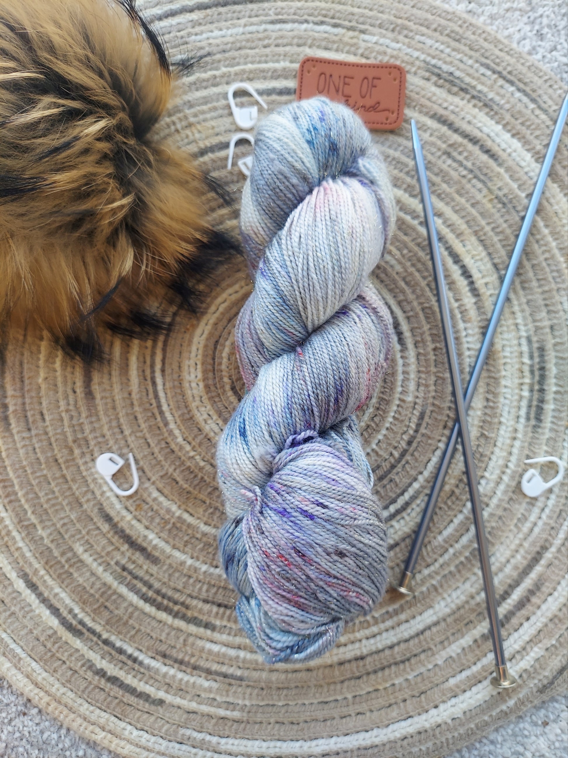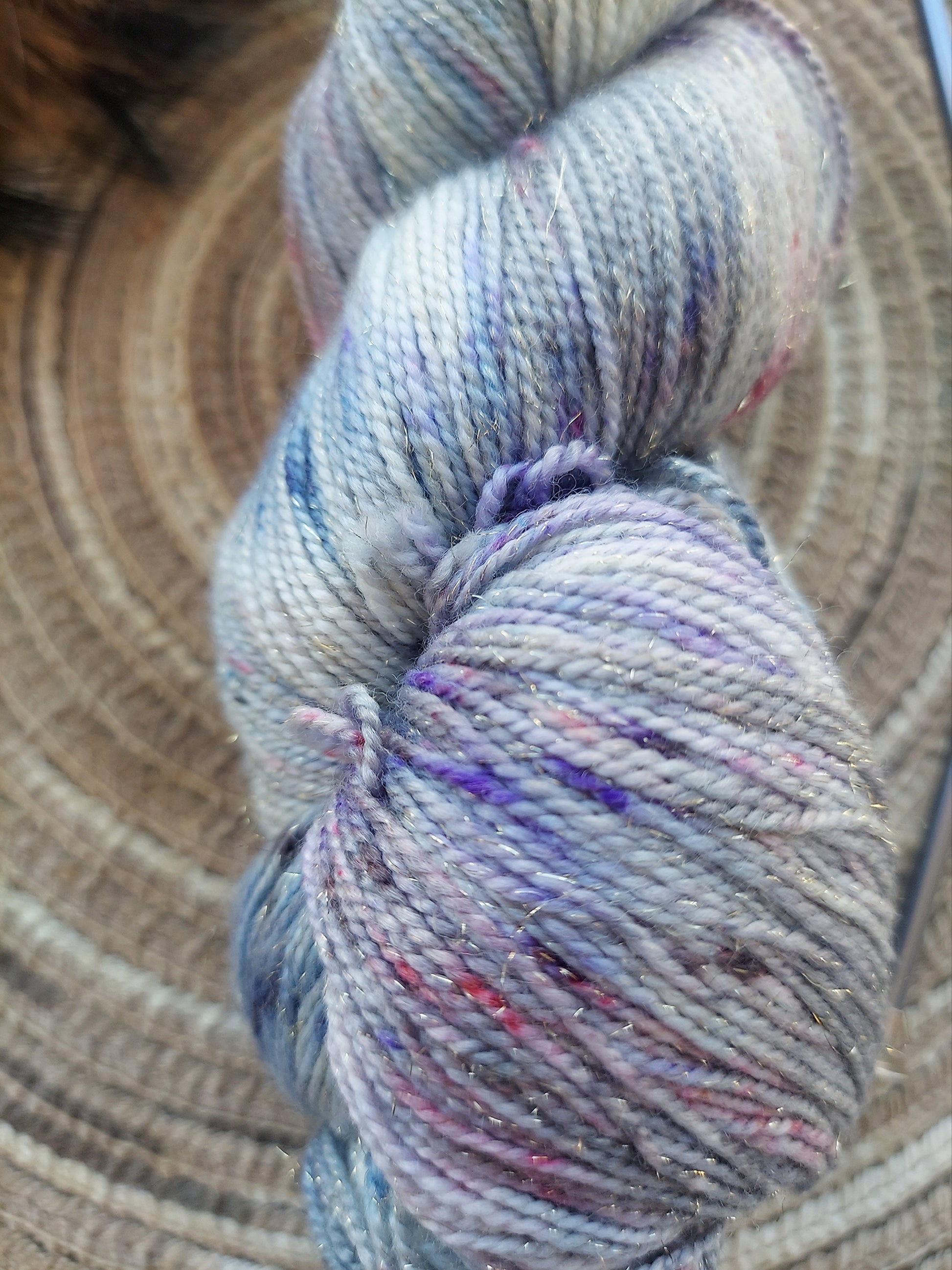 Indulge in the luxurious touch of Cornflower Bouquet yarn, a premium offering from Expression Fiber Arts that promises to transform your knitting projects into masterpieces. This exquisite yarn is a part of the Glimmer Fingering collection, known for its subtle, delicate gold sparkles that catch the light like the sun glinting through the clouds.