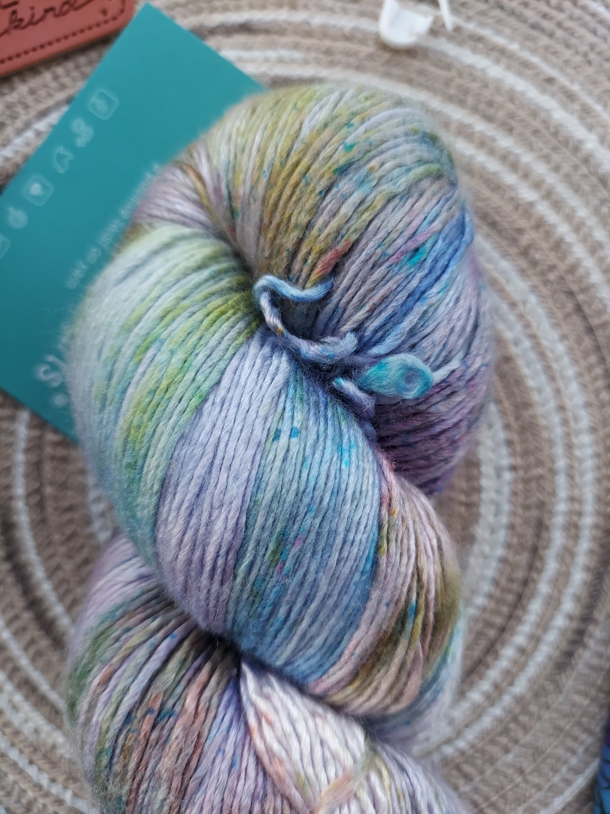 Smooth with a gorgeous gleam. This is a fingering weight yarn is utra soft, creamy to the touch, cloud-like, and breathable making it perfect for next-to-skin accessories and garments! The silk in the yarn glows, gleams, and takes dye exceptionally well ❤️ Contributing to the lovely softness the yarn holds.